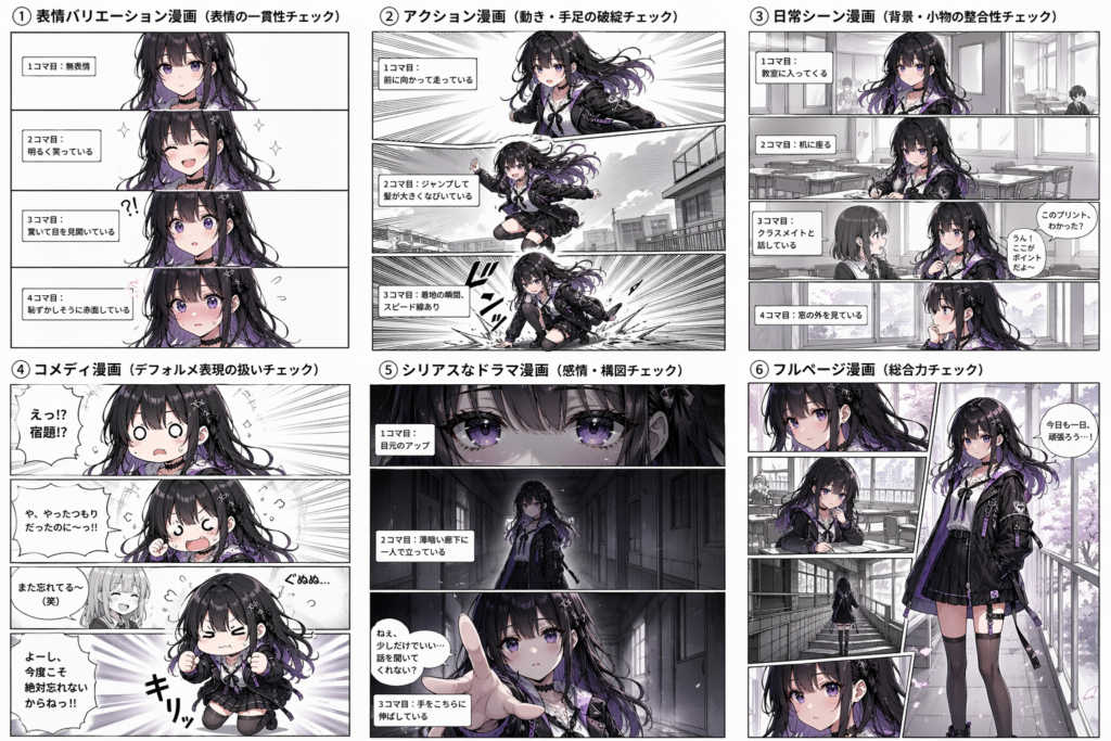 ① 表情バリエーション漫画(表情の一貫性チェック)